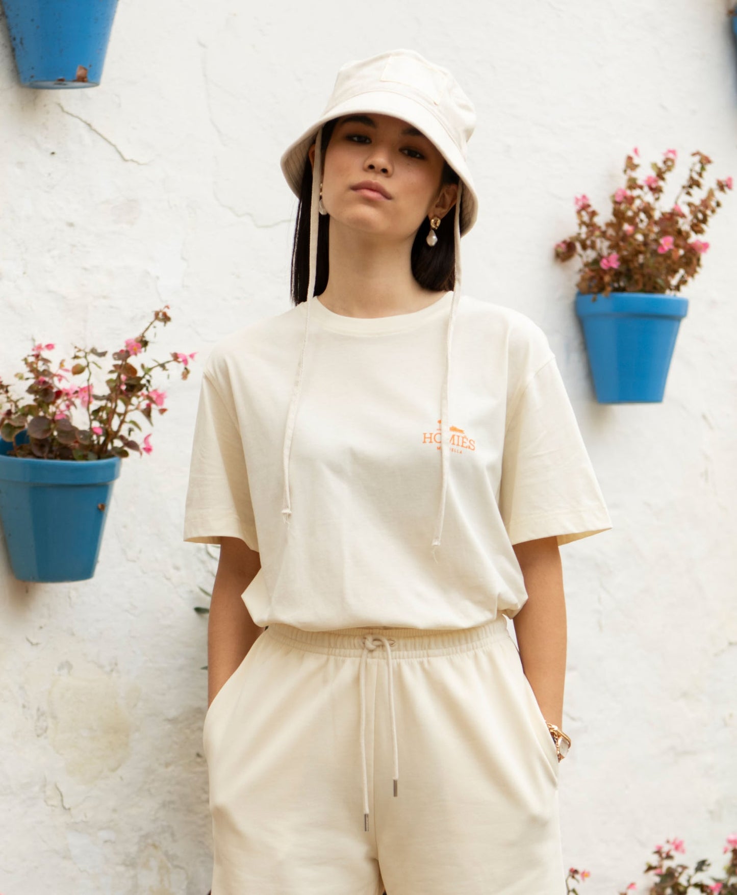 T-shirt coupe regular 100 % coton léger couleur crème. Orné du logo classique Homies Marbella imprimé en caoutchouc orange sur la poitrine, il complète son look décontracté et minimaliste.
